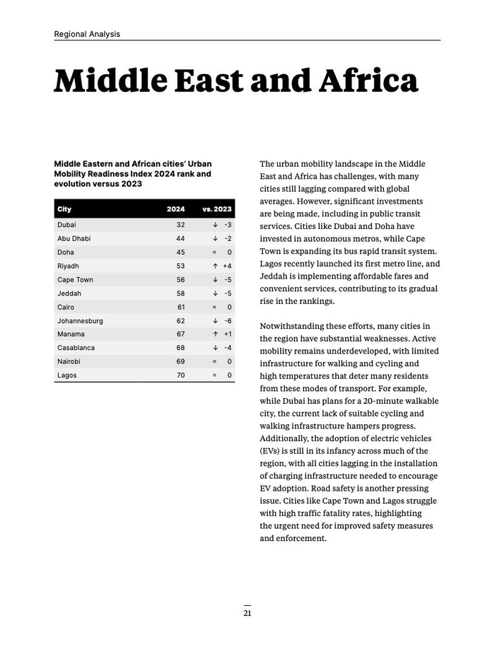 第六版“城市交通准备指数”采用71项关键绩效指标对全球70个城市进行排名。