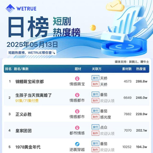 13日短剧热度榜:《锦鲤萌宝闹京都》连续五日第一,大盘热度5640万