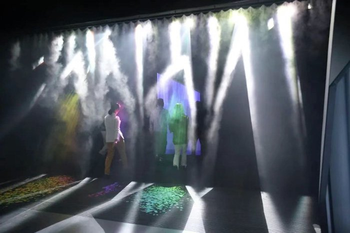 在空间内,由多台松下PT-FEQ150C系统工程投影机,以及高音质扬声器组合成的23.4声道立体声音系统等,通过振动和影像刺激五感,唤醒体验者平时很少会意识到的感官体验