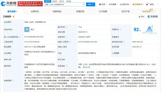 新浪科技讯 5月15日上午消息,天眼查App显示,近日,百度(山东)科技有限公司成立,法定代表人为黄龙,注册资本2亿人民币,经营范围包括人工智能应用软件开发、人工智能行业应用系统集成服务、人工智能硬件销售等。股东信息显示,该公司由北京百度网讯科技有限公司全资持股。(罗宁)