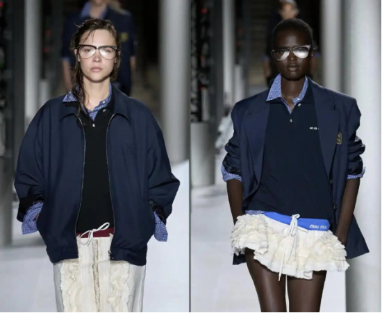 在社交媒体上,#Miu Miu风#掀起了一场席卷全球的“叛逆富家女”大浪潮,其标志性的镶钻亮片底裤、容易着凉的露胃毛衣,校服式的百褶短裙、超低腰裙、花苞裙、芭蕾鞋等等,都成为了年轻人表达先锋的时尚符号。