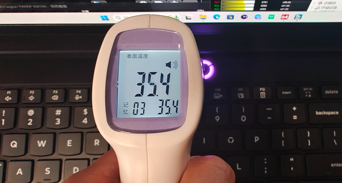 IT之家也对机身 C 面的温度进行了测试,在键盘区域上方温度最高的地方大概 35.4℃,而在键盘区域内温度大概 31.8℃,从实际体验来说,温度的控制可以说是惊艳了。可见英特尔内吹风技术的应用确实对散热效果有着立竿见影的作用。
