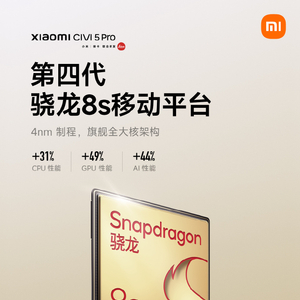 IT之家 5 月 17 日消息,小米手机今日官宣,小米 Civi 5 Pro 搭载第四代骁龙 8s 移动平台,其采用 4nm 制程工艺。CPU 性能提升 31%,GPU 性能提升 49%,AI 性能提升 44%。