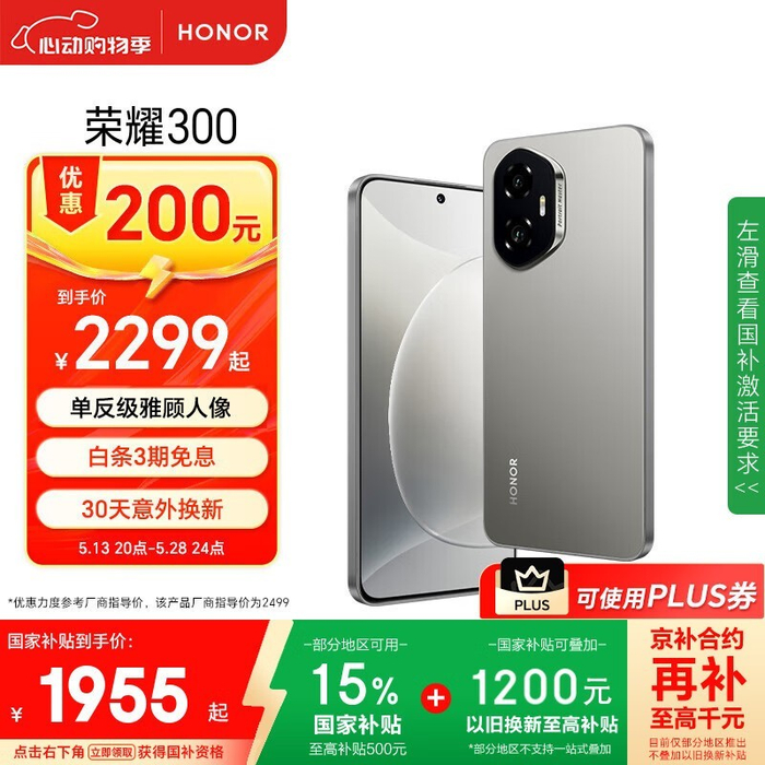 荣耀300 5G手机12GB+256GB苍山灰限时特惠1646元