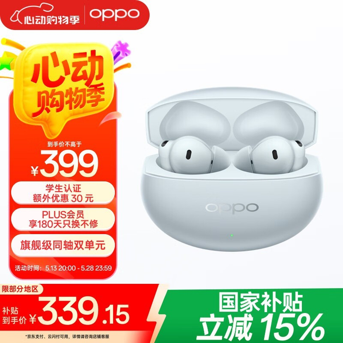 OPPO Enco Free4 水漾蓝全新上市,降噪音质升级限时优惠
