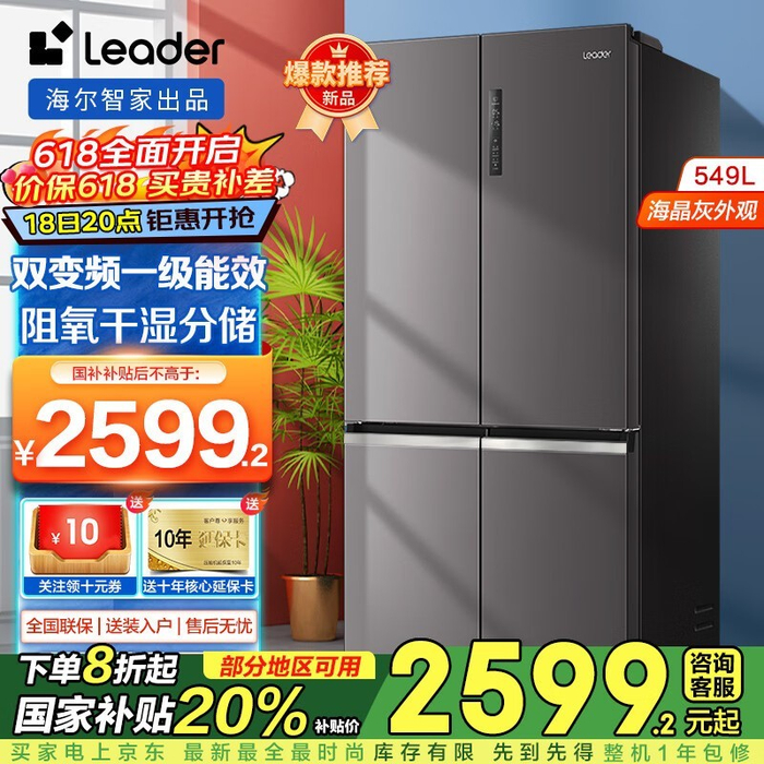 Leader iFamily风冷十字冰箱海晶灰549升大容量仅售2599元
