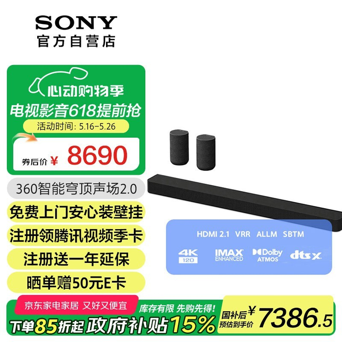 索尼HT-A8000+RS5环绕音响套装限时优惠
