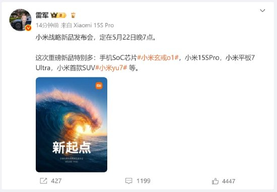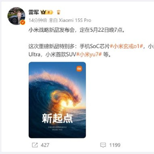 雷军官宣:5月22日举行小米战略新品发布会,小米玄戒O1、小米YU7将亮相