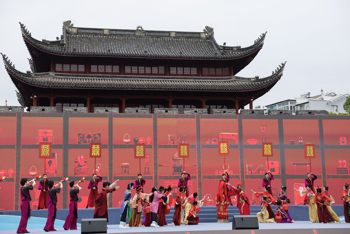 5月19日在2025年“5·19中国旅游日”主会场上拍摄的传统婚俗表演。当日,由文化和旅游部、浙江省人民政府共同主办的2025年“5·19中国旅游日”主会场活动在浙江省宁波市宁海县举行。活动现场包括非物质文化遗产文创展、文旅直播间、情景剧《山河行歌》演出、“锦绣山河·美好旅程”宁波宣言发布、全国等级旅游民宿及全国文明旅游单位授牌、宁波—新疆银发旅游专列发车仪式、“你好!中国”入境旅游合作伙伴协议签署仪式等。新华社记者 徐昱 摄