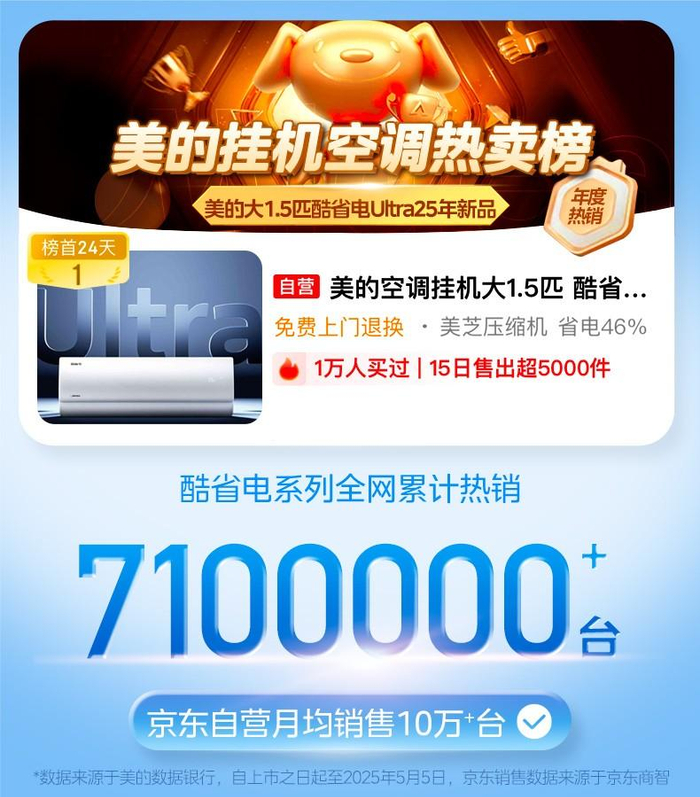 比如美的酷省电Ultra系列就搭载了全新一代省电芯——AI酷省芯片,以传统空调相比,算力更精准,劲升150倍,再配合全球市占第一的美芝压缩机、双排冷凝器,确保稳定运行、高效散热,让空调开机就省电,不用为电费担心。此外,美的酷省电Ultra系列还创新搭载AI酷省电算法,可根据全国34个地区的不同用户的不同习惯,自动匹配最佳的省电方案,不限地域、不限时长,越用越省电,自带的OTA自进化功能,使空调还可以自动学习用户的使用习惯及使用场景,自动更新升级,持续为用户提供超乎想象的节能体验。