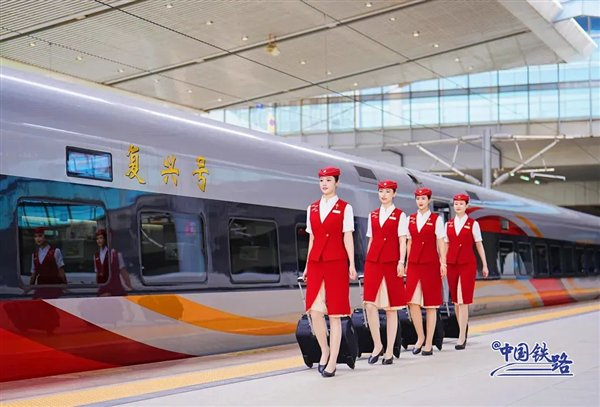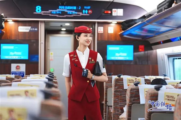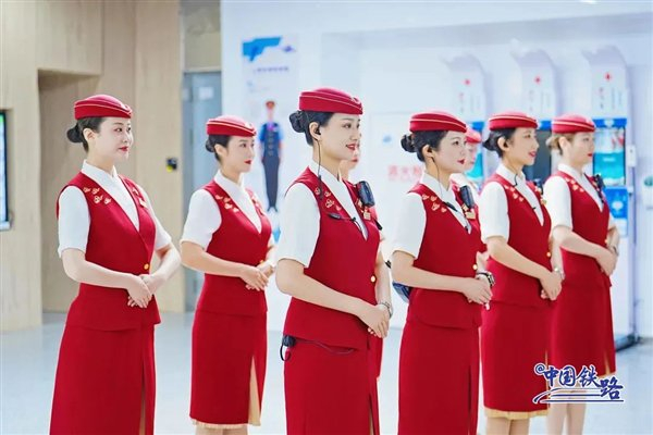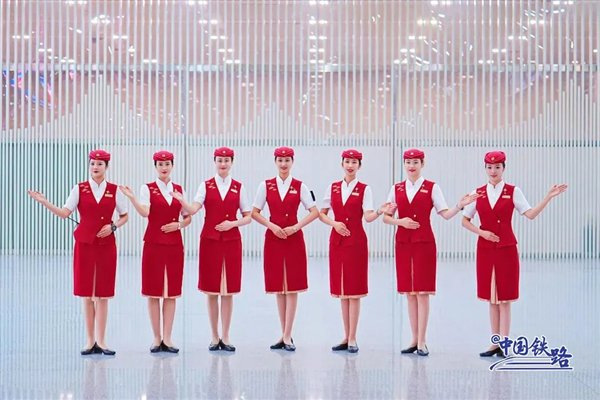 复兴号乘务员新款夏季制服亮相:耀眼中国红配色