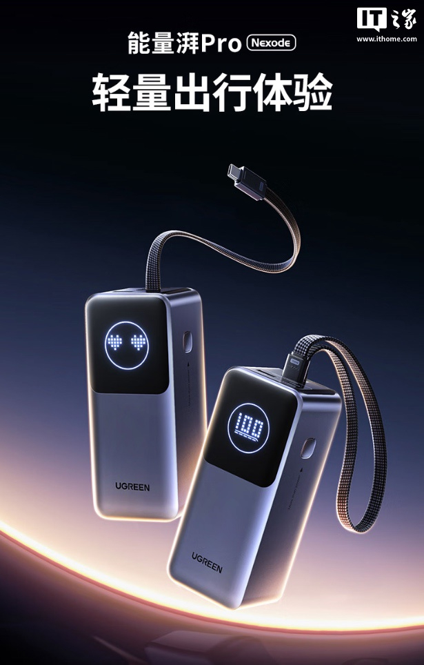 绿联能量湃 Pro 充电宝上市:100W 自带线,券后售 189 元