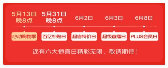 开门红(5月31日-6月3日):现货全面开售,京东百亿补贴商品直降30%,淘宝直播间发放大额隐藏券。