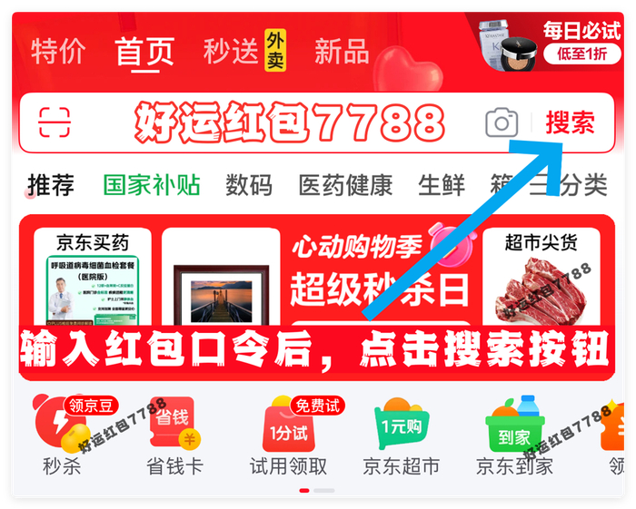 京东APP搜:好运红包7788