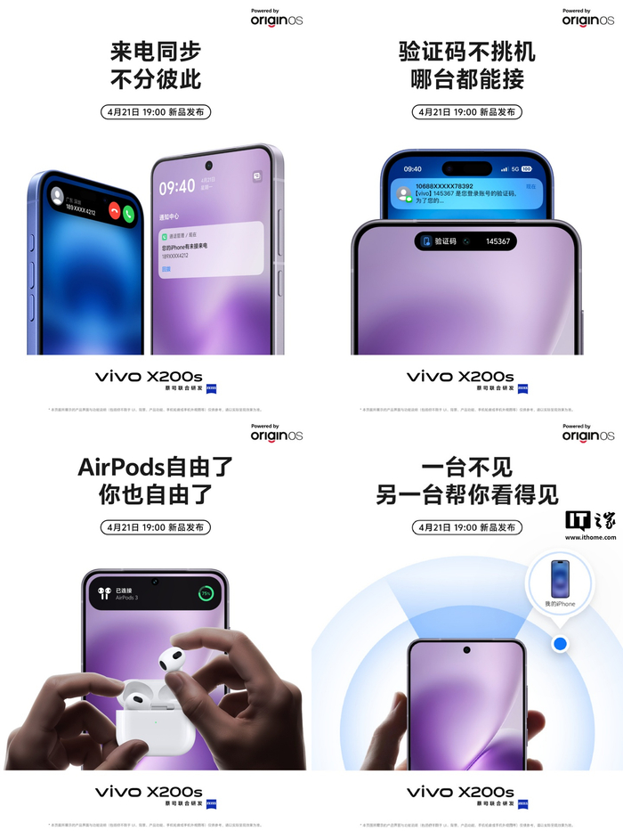 目前 vivo 正持续打通苹果生态,据此前报道,今年 4 月发布的 vivo X200s、X200 Ultra 手机便支持与 iPhone 同步来电 / 短信、互相定位、兼容 AirPods 等功能特性。