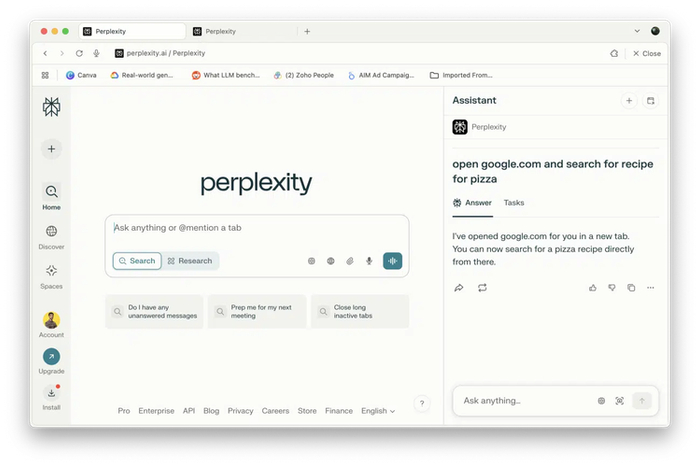 Comet会根据用户的浏览历史和打开的标签页(所有数据均本地存储,不用于模型训练)提供个性化响应。它还将Perplexity的核心搜索功能集成到侧边栏中,可在所有网站上访问,使用户无需切换标签页即可查询、总结或探索内容。