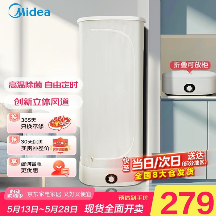 美的干衣机家用烘干衣柜限时特惠279元