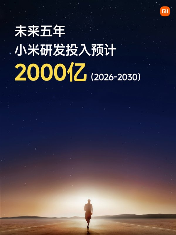 雷军现场宣布,未来5年(2026-2030年),小米的研发投入预计将有2000亿元,再翻一番!