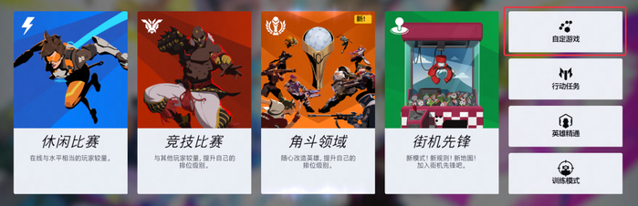 玩家可登录《守望先锋》,在主界面点击【游戏】-【自定游戏】。