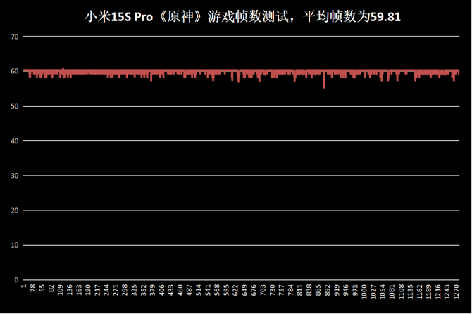 《原神》特效画面拉满的情况下,经过20分钟的跑图,可以看到,游戏的平均帧率在59.81FPS,帧数非常稳定,并且小米所有的AI技术都能使用,游戏体验上,配合上澎湃OS,依旧非常丝滑流畅,没有任何卡顿的情况发生。