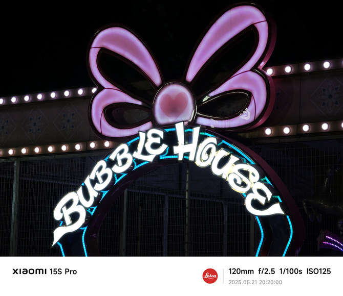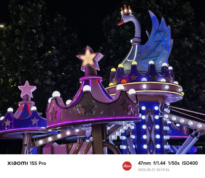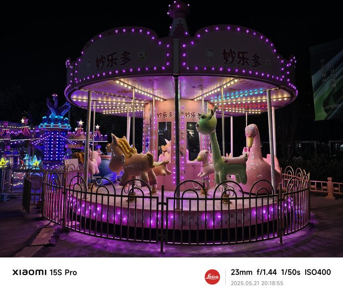 夜景方面,不论是主摄还是长焦镜头,在黑夜中拍摄灯光主体的时候,能够很好地出片,即便是光线非常复杂,也能够精准捕捉主体、突出主体,就比如上面的这中环境中,淘气堡也能够拍出梦幻般的场景,对于绝大部分的用户而言的话随手一拍就非常漂亮。