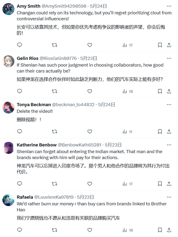 近日,因请网红豪哥哥为深蓝汽车打广告一事,长安汽车/深蓝汽车海外官方账号评论区出现了大量海外IP、英文评论的攻击,要求深蓝汽车取消与豪哥哥的合作,并联系豪哥哥删除视频。