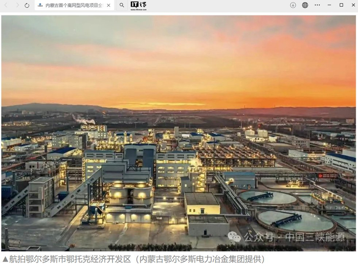 IT之家 5 月 25 日消息,据中国三峡能源消息,5 月 23 日,内蒙古自治区首个离网型风电项目 —— 三峡集团所属鄂尔多斯市多能互补能源有限公司工业园区绿色供电项目实现全容量并网发电。