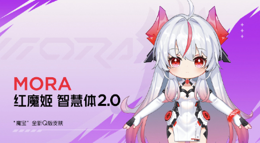 备受大家喜爱的红魔姬Mora智能体2.0有了新的Q版皮肤——魔宝。同时智能也得到了提升,不仅能在游戏全场景陪玩,还能在日常场景陪伴。