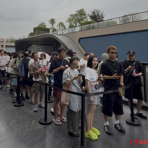 泡泡玛特全球首家臻藏店门口,消费者在排队 程璐洋/摄