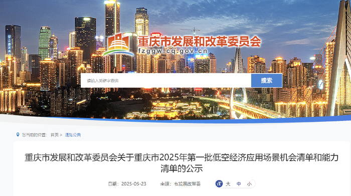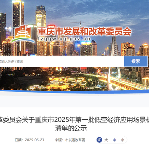 C114讯 5月27日消息(兰茜)近日,重庆市发展改革委公示重庆市2025年第一批低空经济应用场景机会清单和能力清单,为推动重庆市低空经济发展注入新动力。
