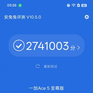 在安兔兔V10版本的跑分测试中,一加Ace 5至尊版轻松突破2741003分,展现出了强大的硬件实力。