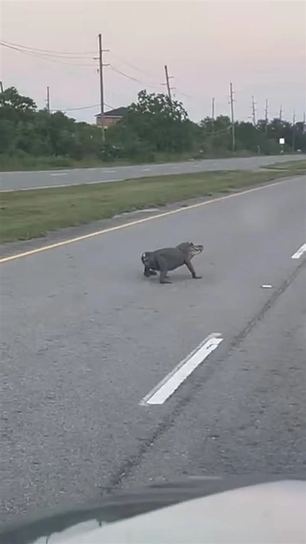5月20日,生活在美国路易斯安那州的阿什琳·巴塞洛缪(Ashlyn Bartholomew)在回家路上,发现一只怪异的动物正在穿越马路。