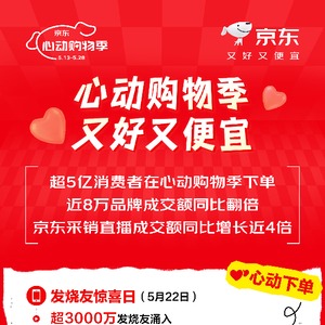 京东心动购物季阶段战报:超5亿消费者下单 520当天多品牌秒送业务成交同比增长超180%