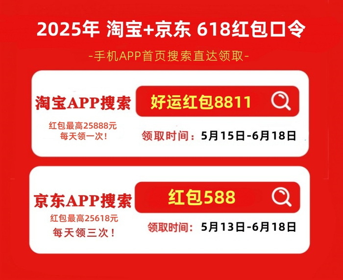 首先,划重点!今年京东的618最新红包口令是「红包588」,淘宝618最新红包口令是「好运红包8811」要记住!