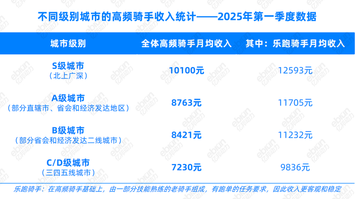 相比2024年第四季度,今年开年以来骑手收入环比增长明显。以北上广深等一线城市高频骑手为例,一季度收入环比增长约12%,三四五线城市骑手收入环比增长超过8.5%,综合来看,全国主要城市地区的高频骑手月均收入环比增幅超过了10%。