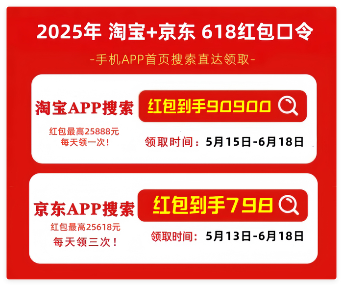 首先,划重点!2025年最新的京东618红包口令是「红包到手798」,天猫/淘宝618红包口令是「红包到手90900」记得每天去领,领的红包大小和你搜索的什么口令有关的!