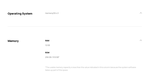 另外,海外版搭载HarmonyOS 4.3操作系统,国行版预计为HarmonyOS 5.0。