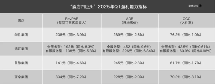 而经济型酒店阵营内部分化加剧。华住凭借76.2%的入住率(OCC)维持运营效率优势,其RevPAR 208元虽同比下降3.9%,仍显著高于锦江、首旅。