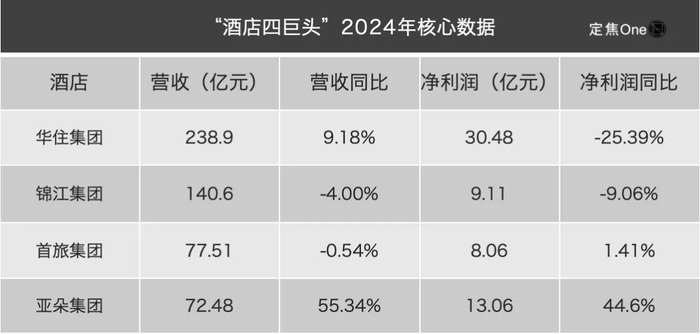 从2025年一季度的营收体量来看,华住以54亿元的营收、8.9亿元的净利润,居于首位,但营收增速降到2.2%(2024年是9.2%),已显疲态。