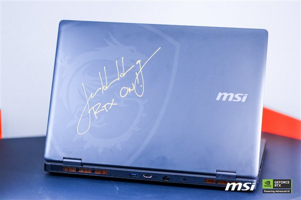 比如在台北电脑展演讲期间,黄仁勋唯一展示的RTX 5060笔记本,就来自微星的星影Air,黄仁勋还造访了微星笔记本展台,并在一台微星神影18 AI 2025上签下了名字和RTX ON!