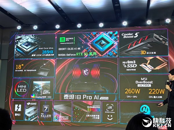 顺带解释下微星这代RTX 50系列笔记本命名里AI和处理器的关系:带有AI的是酷睿Ultra 200HX系列,都带有NPU独立AI引擎;