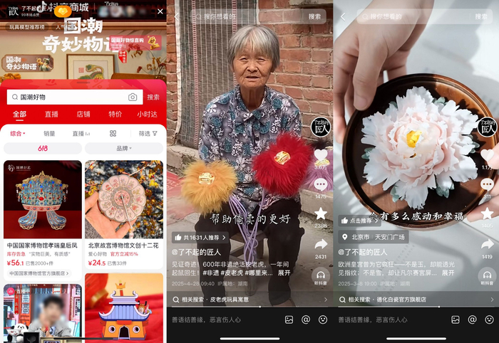 在非遗文创、小众设计、地域特色等细分领域,他们拥有独特打法和鲜明特色,以差异化供给和创意内容撬动细分市场,让消费者在购物中感受文化内涵与情感价值,成功吸引追求个性化、特色化消费的人群。