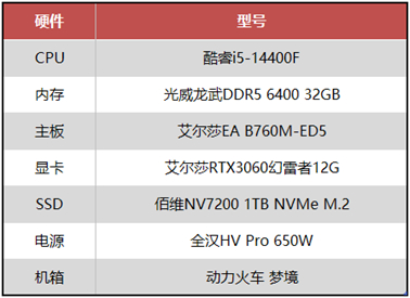 结合《鬼武者2RE》的配置要求,我们整理了一套能够畅玩该作的游戏配置。从硬件的选择和搭配上看,这套配置使用的是酷睿i5-14400F处理器搭配B760的主板和RTX3060显卡,内存和固态是32GB的DDR5 6400套装以及1TB的PCIe 4.0硬盘,整体性能完全可以满足《鬼武者2RE》以及其它热门单机和网游的需求,而且这套配置的主板和显卡都是艾尔莎品牌的产品,老牌厂商的出品更加稳定可靠。