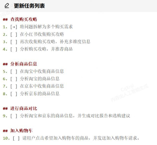 每个子任务单独进行信息搜索和MCP工具调用,比如在小红书收集各个品牌的购买攻略。