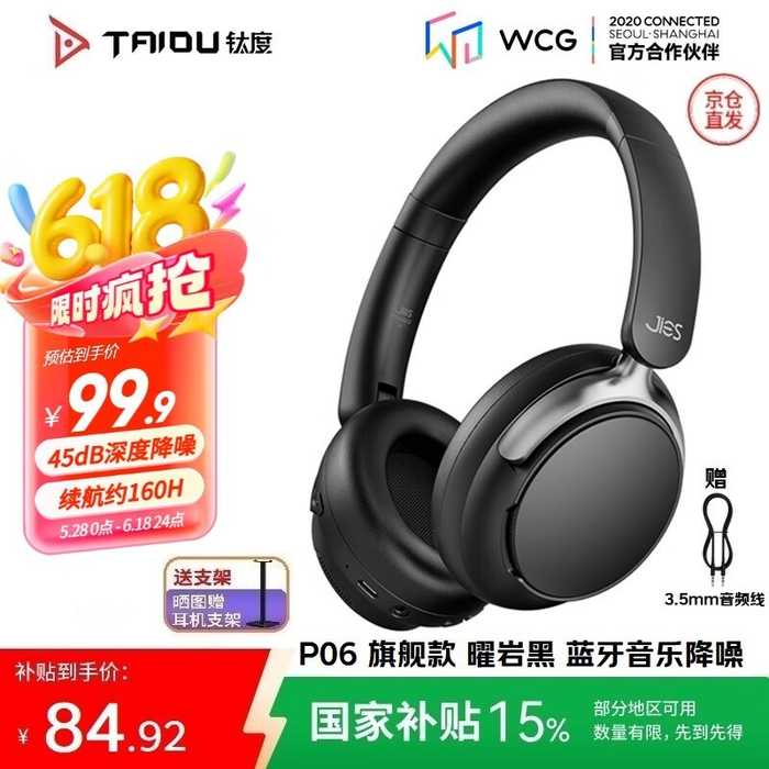 钛度杰P06 ANC降噪耳机76.42元限时特惠