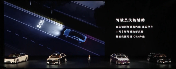 尊界S800首发搭载天使座主动安全系统,首创正面碰撞前自主调节座椅姿态、收紧安全带,碰撞后切换冗余电源、自动拨打救援电话上报救援位置。