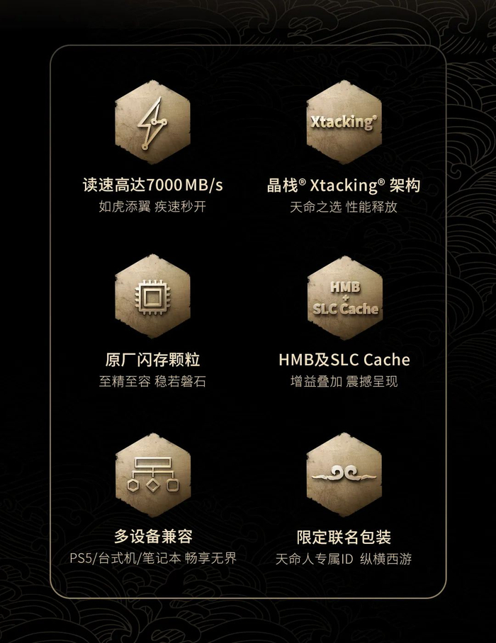 致态 TiPlus 7100 固态硬盘《黑神话:悟空》联名版即日起正式发售,1TB 定价 629 元,2TB 定价 1099 元,IT之家附官方一图知如下: