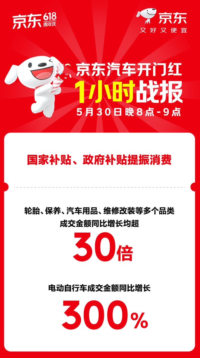 政府补贴助力京东汽车618火爆开场!轮胎、保养成交额同比增长超30倍