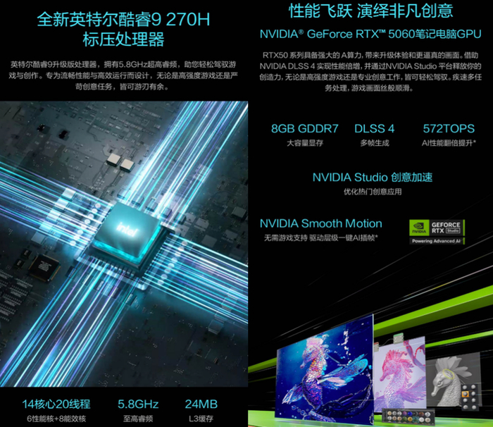 性能是华硕无畏Pro16 2025的核心升级之一。它搭载全新英特尔酷睿9,拥有5.8GHz超高睿频,24MB L3缓存,轻松驾驭高强度游戏、创作需求。配备新一代NVIDIA GeForce RTX 5060独显,8GB GDDR7大容量显存,基于全新NVIDIA Blackwell架构,搭载第五代 Tensor Cores和第四代RT Cores,AI算力飙升至572 TOPS,并支持最新的DLSS 4多帧生成技术,大幅提升游戏和创作的帧率,带来更加流畅的游戏体验以及更加细腻的画质。无畏Pro16 2025搭载华硕专属冰锋散热系统,双风扇、双热管带来强劲性能的同时,确保高效稳定性能释放。