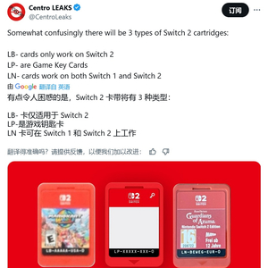 任天堂 Switch 2 掌机被曝有 LB、LP、LN 三种游戏卡带